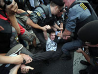 Что примечательно, после разрешенного властями митинга "несогласные" с выборами попытались устроить несанкционированное шествие, закончившееся потасовками с ОМОНом и массовыми задержаниями. В ходе потосовок с ОМОНом были задержаны один из лидеров движения "Солидарнсоть" Илья Яшин и блогер Алексей Навальный, получившие в итоге 15 суток ареста за сопротивление сотрудникам полиции.